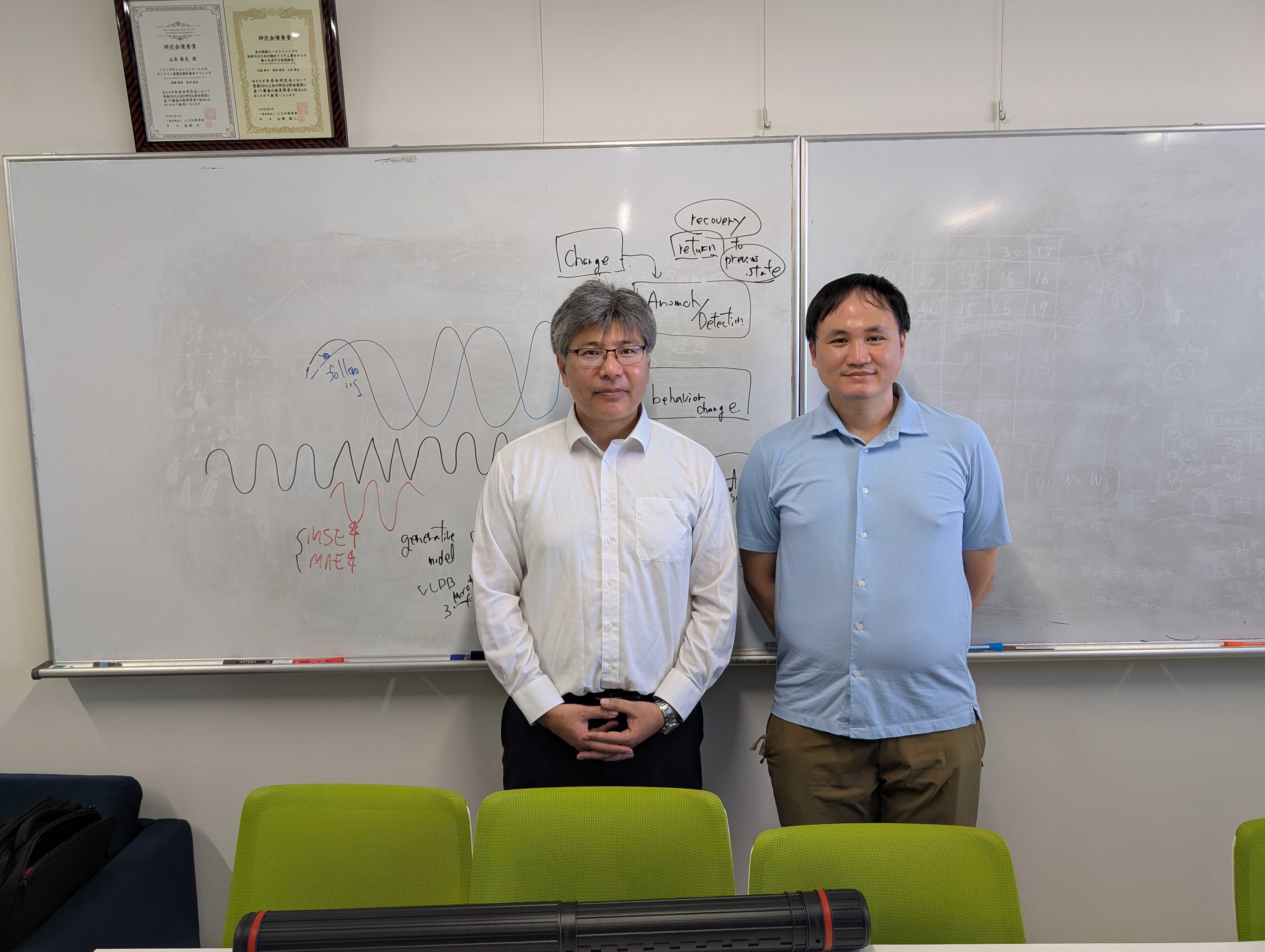 修士学生の酒匂日菜乃さん,清水裕斗さん,西川侑志さんの3名がFIT2023にて発表を行いました。 酒匂さんの発表は8月のKBS研究会の発表の基礎となった距離付き起点順序分解に基づくオンラインアルゴリズムの正当性と動的ウィンドウ法を提案する内容でした。 清水さんの発表は6月のJSAI全国大会の発表をさらに発展させた内容でした。共に国内研究会の発表は2度目ということもあり,しっかりとした質疑応答でした。清水さんの論文は選奨論文セッションで1次審査を突破しました (2次審査は残念ながら不採択)。 特徴量選択による効果や波及性が見えにくい点がありそのあたりをブラッシュアップさせる必要がありそうです。西川さんの発表は酒向先生@東京大との共同研究 (科研基盤研究A 「広視野高頻度測光観測と異常検知による秒スケールで変動する宇宙の探査」) に関するもので卒業研究の内容がベースになっています。内容は修士の発表としては発展の余地を残していますが,機械学習モデルによる異常検知のベースラインは示すことができたのでは と思います。今後の研究に期待。